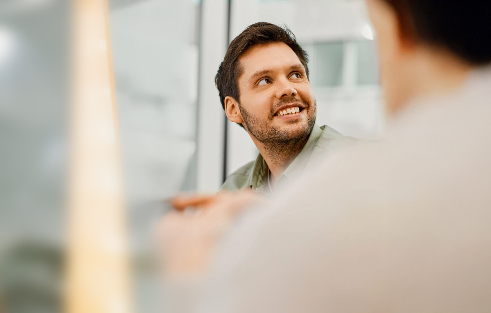 Business owner engages team member